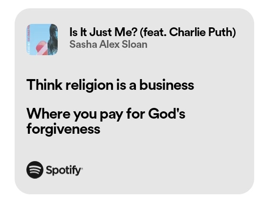 When everybody is singing and writing about revival and ascension and battle and binding and casting the devil, and nobody cares to sing about other things that matter and makes us people. Love, sadness, heartbreak, hurt, interests, randoms, etc. It then seems hypocritical, sorry to say. It's like we're disregarding them. “They don't matter.” “Children of God don't get heartbroken.” That's what we're implying indirectly. I have a lot of problems with today's church, this is just a pinch of it.