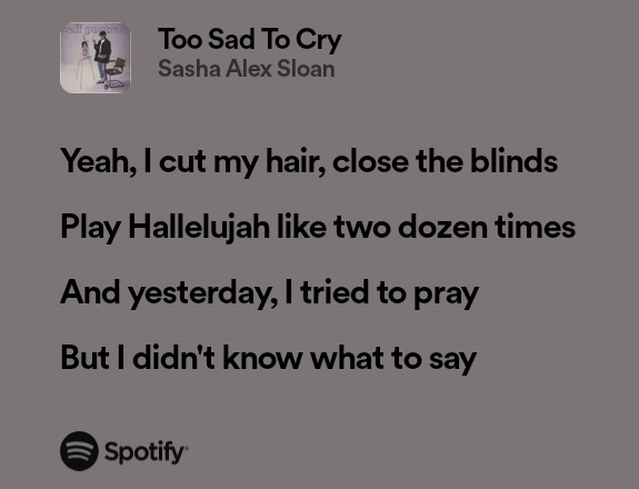 When you're feeling sad, heartbroken, depressed… please don't hide it. If it's difficult for you to embrace it, see a sad movie, or listen to a song that will get your your well of tears to overflow against your pathetic act of bravado. Talk to your comforter. I heard somebody say on IG or TikTok sometime, they said, paraphrasing, “when you feel sad, and don't take it to the holy spirit, who then do you want to comfort you?”